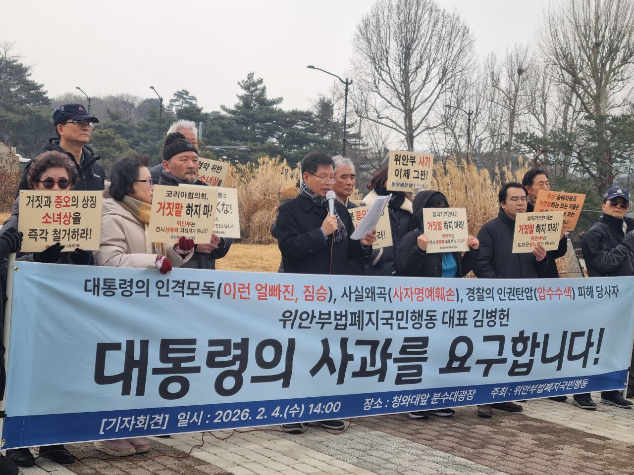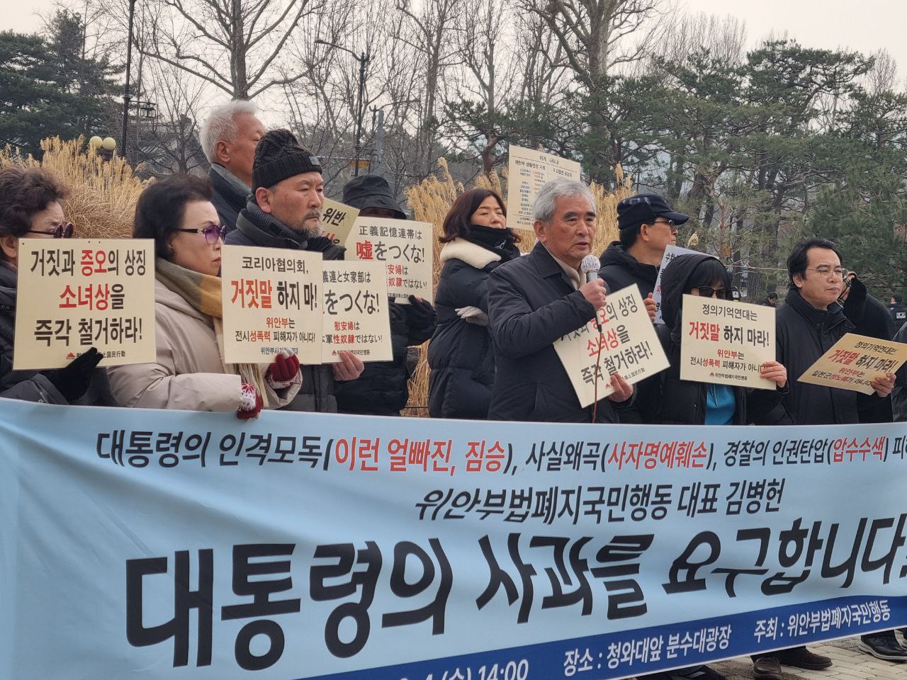 韓国李在明大統領のX投稿(1月6日、2月1日)、それを受けての警察の家宅捜査・取り調べにも関わらず、慰安婦の真実を発信する金柄憲氏らは2月4日にソウルの慰安婦像前と青瓦台(韓国大統領府)で街頭活動を行いました。