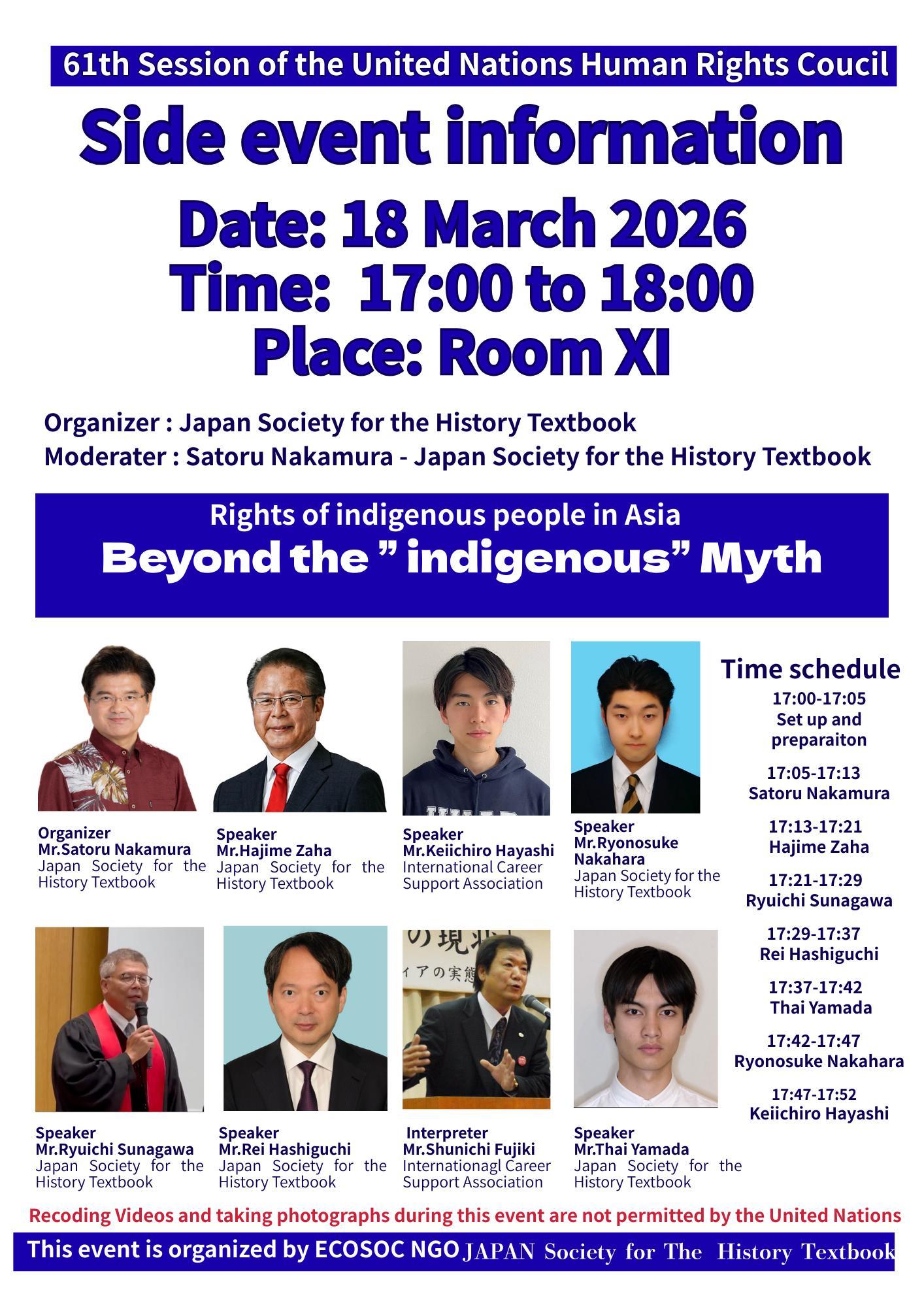 ジュネーブ国連で開催された人権理事会61セッション(2026.2.23-3.31)において、3月18日にサイドイベント「Rights of Indigenous People in Asia ~ Beyond the “Indigenous” Myth」を開催しました。